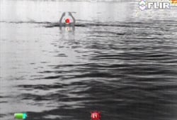 Thermal imagers from FLIR are used all over the world in the maritime search and rescue role. In a man-overboard scenario, the head of a person floating in the water is often the only part of him that is visible. Visible as a white or red ball against a black or dark gray background on the video display, the human head shows up clearly because its thermal heat is greater than that of the water. This is as true at night as it is during the day, creating a true 24-hour response capability.