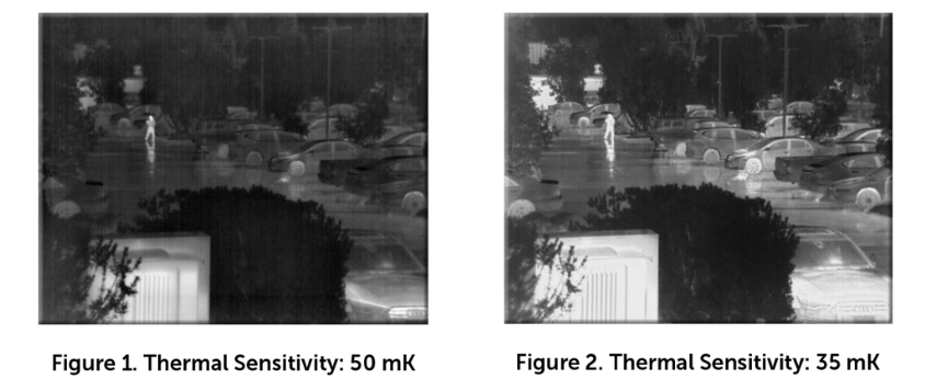 Bir termal kamera, görüş alanındaki sıcaklık değişikliklerine gri tonlar atayarak bir görüntü oluşturur. Daha düşük mK değerleri, daha küçük sıcaklık değişimlerini algılayabildiği için görüntüde daha fazla gri ton üretilir ve bu da nihayetinde daha iyi netlik sağlar. Bu durum, kötü hava koşullarında daha iyi bir performans sağlamanın yanı sıra analitiklerle birlikte kullanıldığında daha iyi algılama ve sınıflandırma sunar. Buna karşılık, <60mK değerine sahip bir kamera kabul edilebilir olmakla birlikte, daha grenli bir görüntü üretecek, daha düşük bir algılama aralığına sahip olacak ve büyük olasılıkla analitiklerle daha fazla yanlış alarm tetikleyecektir.
